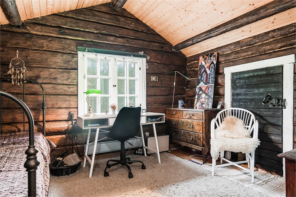 Abgetrennt mit einem Vorhang liegt im hinteren Drittel des Obergeschosses das Schlafzimmer. Hier befindet sich ein Doppelbett mit 1,40m x 2,00m großer, bequemer Matratze. Kleine Lichtquellen sorgen für einen heimeligen Charakter, zwei Leselampen spenden ausreichend Licht für die Lektüre am Abend. Direkt unter dem Fenster steht ein kleiner Schreibtisch. Ein Kleiderschrank und eine Kommode bieten ausreichend Stauraum für die eigene Garderobe – niemand muss hier „aus dem Koffer“ leben.