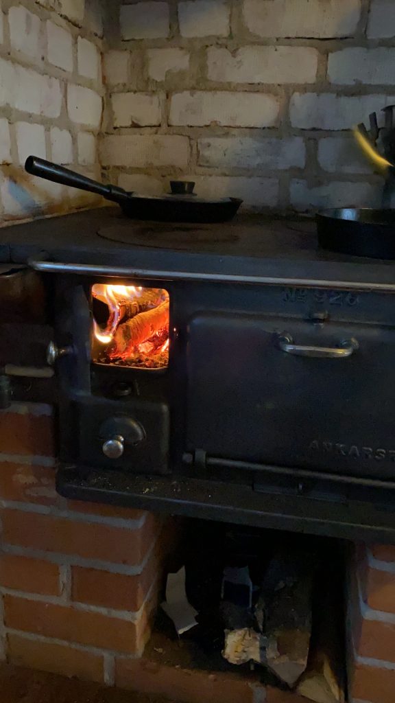 Mit dem ersten Morgenkaffee fängt der Urlaub jeden Tag entspannt neu an. Der alte Kohleherd spendet Wärme und entschleunigt – allein schon durch die Zubereitung des ersten Heißgetränkes am Morgen. Unsere Küche bietet den Charme des alten Holz-Back-Koch-Herdes – ergänzt durch einen Elektroherd. Auf dem einen kann man noch kochen, wie vor 100 Jahren und mit den alten gußeisernen Pfannen wird das Kochen zum Erlebnis.